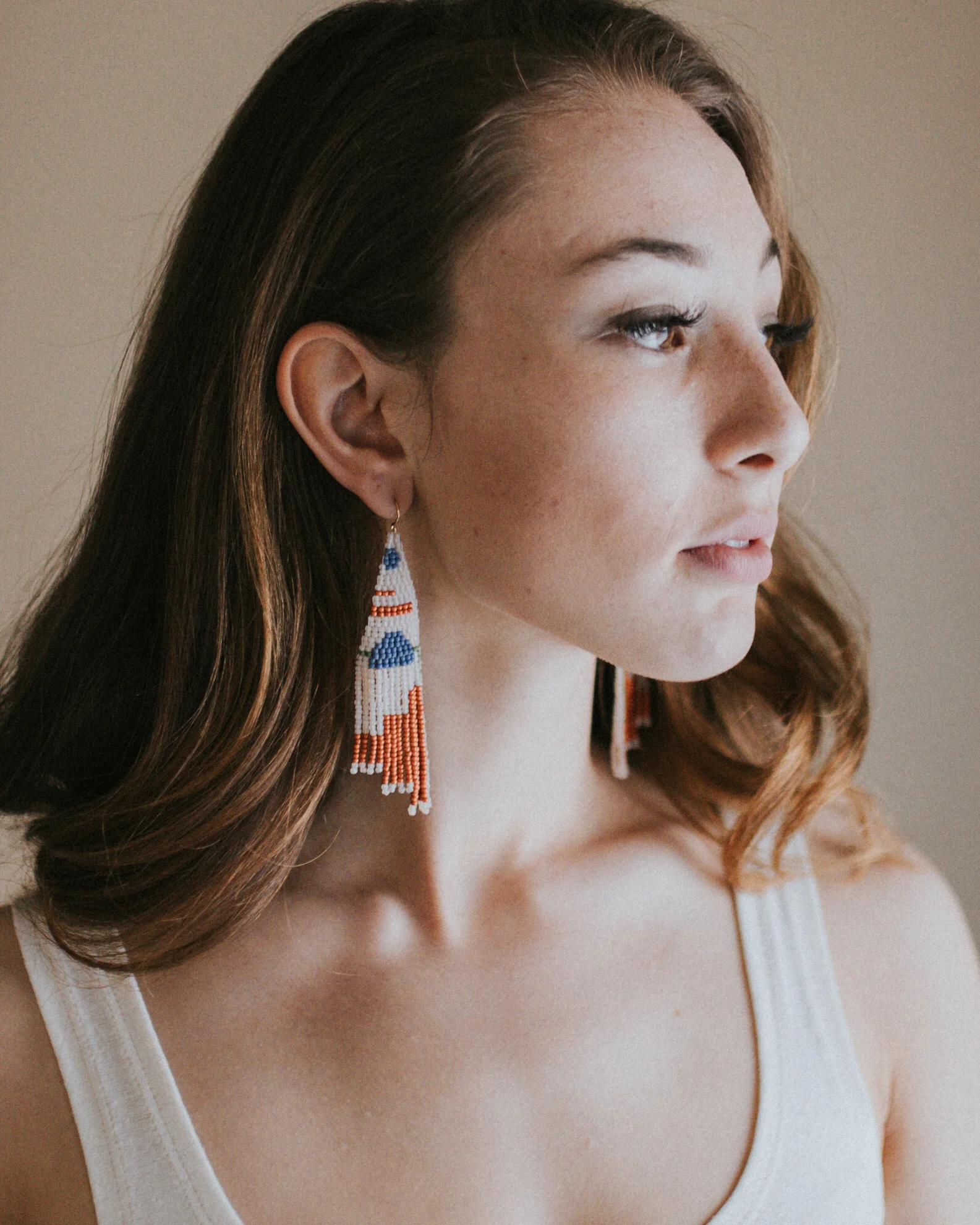 When Lyndsey walked in the studio I had a navy backdrop and strobe lights ready to go but after she showed me the clothing pieces I changed my mind on the entire direction of the shoot. I switched over to this egg drop color and realized that the natural light coming in through the window was gorgeous. So to keep with the natural-ness of the hemp clothing pieces and the handmade jewelry pieces I decided to go sans strobe. Natural light it is.